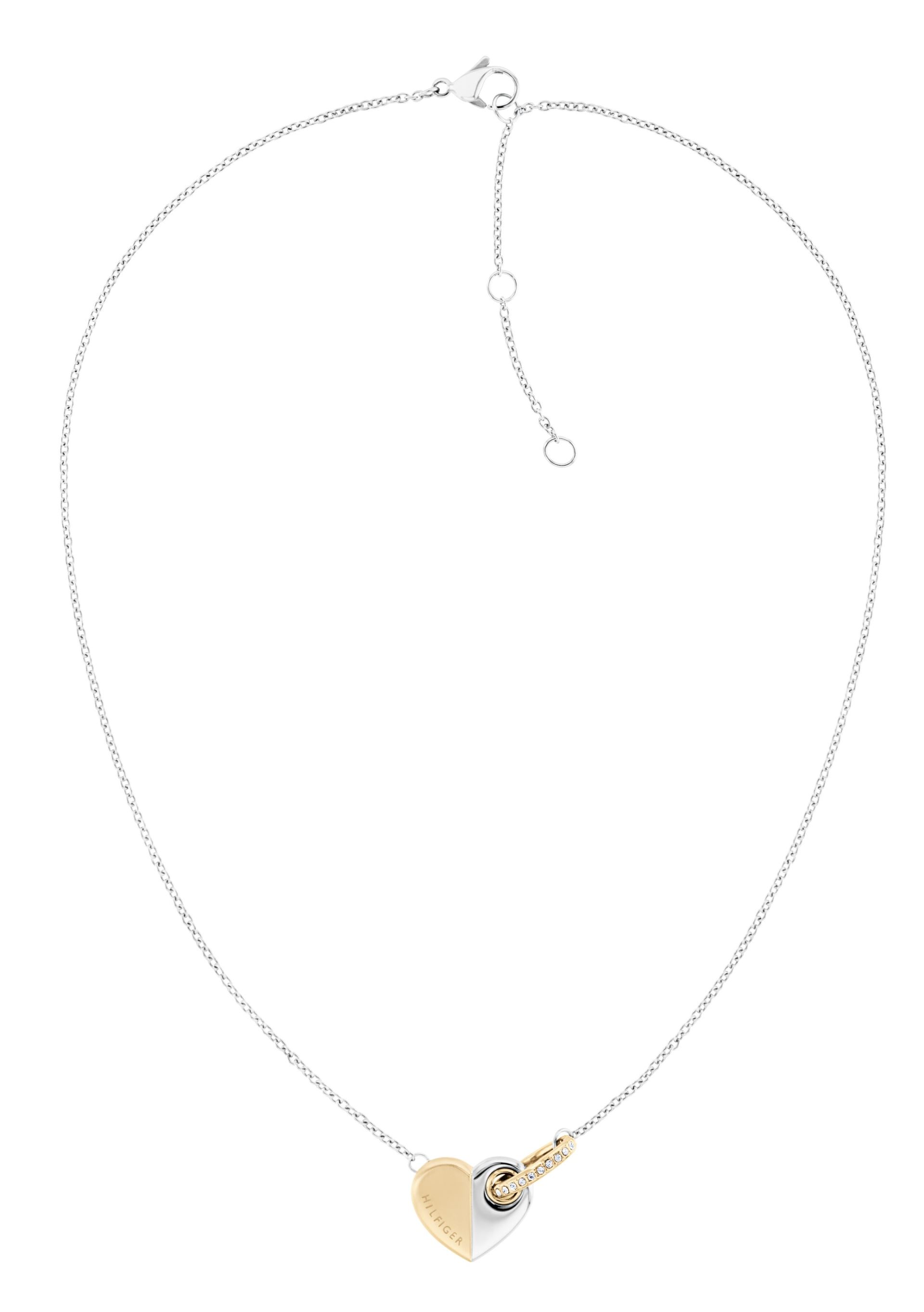 Moderní dámský náhrdelník z dílny značky Tommy Hilfiger, vyrobený z kvalitní oceli, zdobené přívěsem ve tvaru srdce, délka náhrdelníku: 40 cm, možnost prodloužení o 5 cm, zapínání formou oblíbené karabinky.