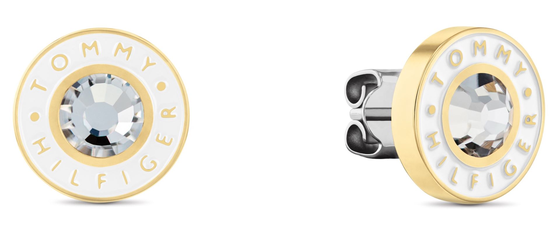 Elegantní náušnice pro ženy od značky Tommy Hilfiger, vyrobené z oceli, pozlacené žlutým zlatem, jako první si vás získá blyštivý zirkon, zdobené bílým smaltem, s designem nadčasových pecek, průměr náušnic: 1 cm, zapínání na bezpečnostní puzetku.