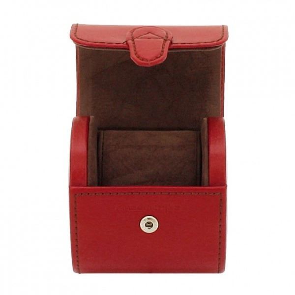 Cestovní pouzdro na 1ks hodinek, kůže červená s hnědým interiérem.