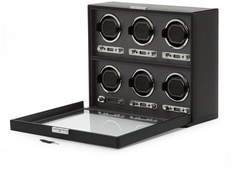 Vládněte nad svou sbírkou s autoritou s nadčasovým 6dílným natahovačem hodinek Viceroy s úložným prostorem. Viceroy, moderní klasika, která vyzařuje podhodnocenou eleganci, zahrnuje hladký oblázkový exteriér, hedvábnou podšívku se stříbrnou texturou, skleněný krycí zámek, podsvícený LCD displej, chromovaný hardware a 6 navíjecích modulů.