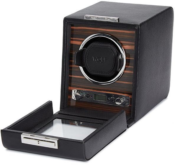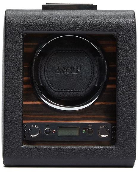 • Funkce a popis:Patentovaná inovace - Každý natahovač WOLF počítá přesný počet otáček. Všechny ostatní nathovače odhadují počet otáček Možnosti rotace: zpoždění startu 10 sekund. Lze nastavit mezi 300 a 1 200 TPD (otáčky za den). Zdvojnásobte množství TPD výběrem obousměrného nastavení Nastavení rezervy chodu: 6 až 72 hodin v krocích po 6 hodinách nastavení rezervy chodu pro přizpůsobení hodinek s rezervou chodu, což dává hodinám čas na uvolnění uložené energie před zahájením navíjení. Nastavení směru: ve směru hodinových ručiček, proti směru hodinových ručiček a obousměrný Baterie: Možnost provozu na střídavé napájení (univerzální adaptér je součástí dodávky) nebo D-Cell / lithiové baterie (není součástí dodávky) Manžeta: Patentovaná uzamykatelná manžeta „uzamkne“ vaše hodinky do bubnu rotátoru pro bezpečné uchycení. Pěna s nízkou hustotou pro všechny velikosti zápěstí, aniž byste vyvíjeli tlak na náramek.
