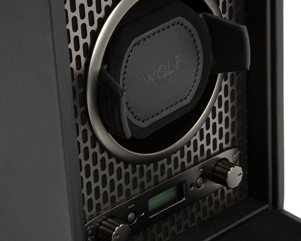 • Funkce a popis:Patentovaná inovace - Každý natahovač WOLF počítá přesný počet otáček. Všechny ostatní natahovače odhadují počet otáček Možnosti rotace: zpoždění startu 10 sekund. Lze nastavit mezi 300 a 1 200 TPD (otáčky za den). Zdvojnásobte množství TPD výběrem obousměrného nastavení Nastavení rezervy chodu: 6 až 72 hodin v krocích po 6 hodinách nastavení rezervy chodu pro přizpůsobení hodinek s rezervou chodu, což dává hodinám čas na uvolnění uložené energie před zahájením navíjení. Nastavení směru: ve směru hodinových ručiček, proti směru hodinových ručiček a obousměrný Baterie: Možnost provozu na střídavé napájení (univerzální adaptér je součástí dodávky) nebo D-Cell / lithiové baterie (není součástí dodávky) Manžeta: Patentovaná uzamykatelná manžeta „uzamkne“ vaše hodinky do bubnu rotátoru pro bezpečné uchycení. Pěna s nízkou hustotou pro všechny velikosti zápěstí, aniž byste vyvíjeli tlak na náramek. Skladování: 1 navíjecí modul