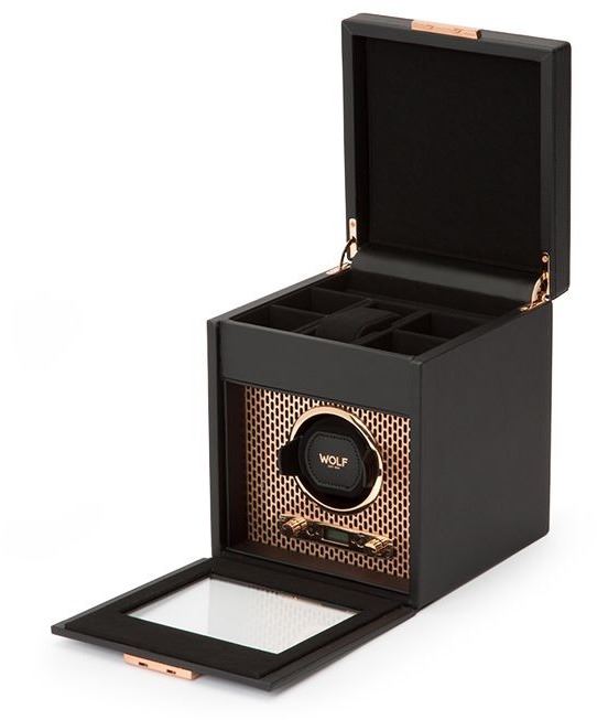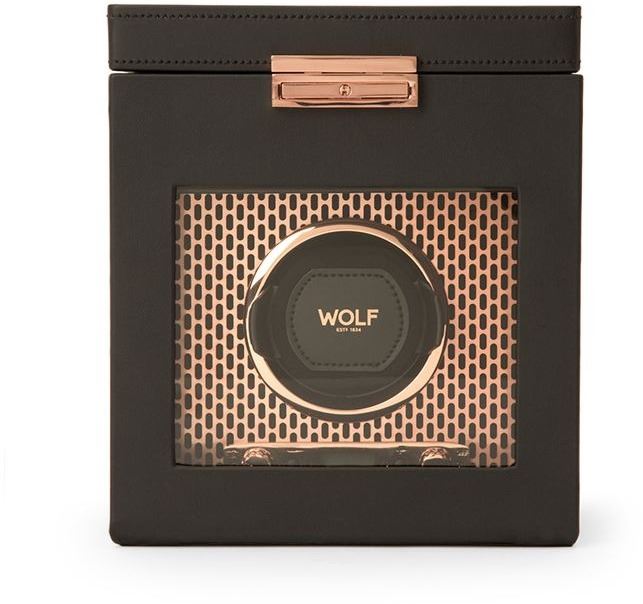 Práškově lakovaná a měděně pokovená laserem řezaná perforovaná ocel tavená s čistými, elegantními liniemi. AXIS pohání moderní a odvážný vzhled pro úschovu vašich hodinek. Zahrnuje vlastní pokovení, vnitřek z mikrovlákna, uzamykatelný skleněný kryt, podsvícený LCD displej.