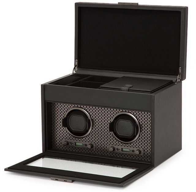 Práškově lakovaná pokovená laserem řezaná perforovaná ocel tavená s čistými, elegantními liniemi. AXIS pohání moderní a odvážný vzhled pro úschovu vašich hodinek. Zahrnuje vlastní pokovení, vnitřek z mikrovlákna, uzamykatelný skleněný kryt, podsvícený LCD displej, hardware s práškovým nebo měděným povrchem, 1 úložiště hodinek se zvýšenou manžetou, 2 střední oddíly, cestovní pouzdro a 2 navíjecí moduly.