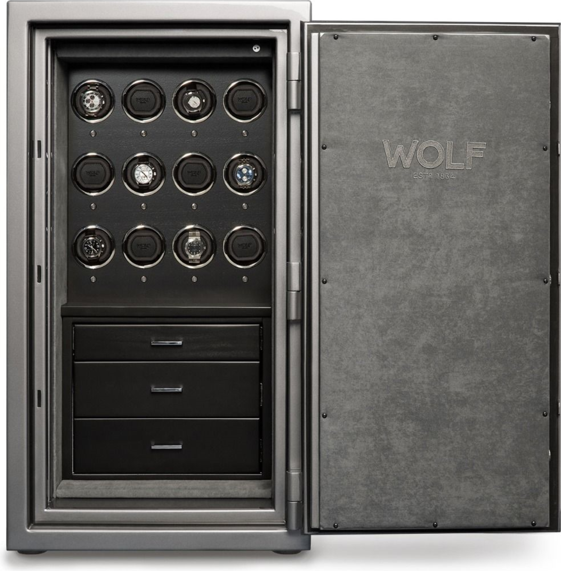 Maximální zabezpečení vašich hodinek, šperků a cenností. Atlas 491265 je kovaný z americké oceli, testován na UL a certifikován pro vloupání a požár, a je neproniknutelnou pevností. Lakovaná ocel leštěná na zrcadlový povrch, zásuvky lemované látkami ošetřenými LusterLoc ™, které přestanou po 35 letech poskvrňovat. Natahovače hodinek jsou ovládány aplikací WOLF připojenou přes Bluetooth. Ovládejte jeden nebo všechny natahovače současně. Atlas. Výběr světové třídy.